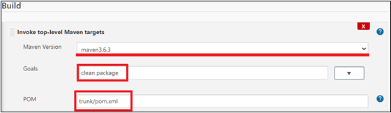 Build – invoke top 선택, Goals 란 –clean package 입력 후 저장