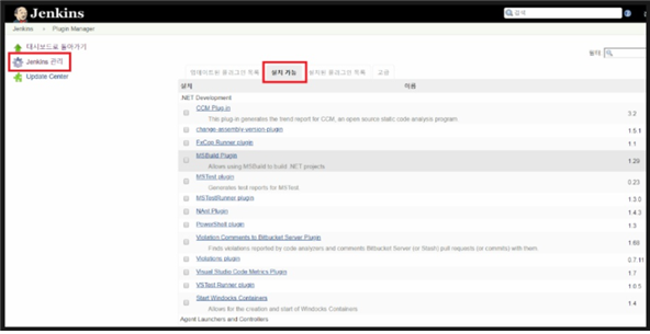 젠킨스 관리 - 설치 가능 탭에서 검색하여 설치한다.